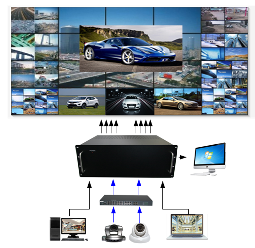 外置拼接解碼處理器(H.265)是專門(mén)為同時(shí)接入處理網(wǎng)絡(luò)攝像機(jī)(IPC)和外部源輸入信號(hào)(HDMI,DVI,VGA等)而設(shè)計(jì),采用最新的專用圖像解碼芯片與FPGA搭配,通過(guò)專用圖像解碼芯片解碼網(wǎng)絡(luò)攝像機(jī)的信號(hào),然后再和通過(guò)FPGA接入的外部源輸入信號(hào)混合處理,實(shí)現(xiàn)圖像切換,拼接,開(kāi)窗,漫游等功能,是目前解決網(wǎng)絡(luò)攝像機(jī)